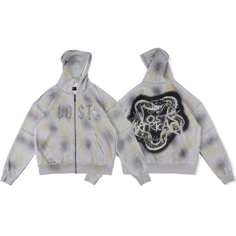 Ingrosso cappotto con cerniera lavata stampato con serpente di strass di peso massimo con diamanti strass felpe con cappuccio e felpe da uomo