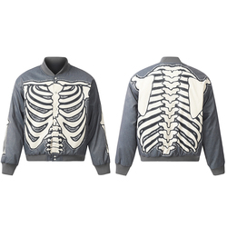 Su misura teschio scheletro ossa con cerniera piena autunno Retro americano giacca da Baseball tutto stampa Vintage cotone giacca da uomo